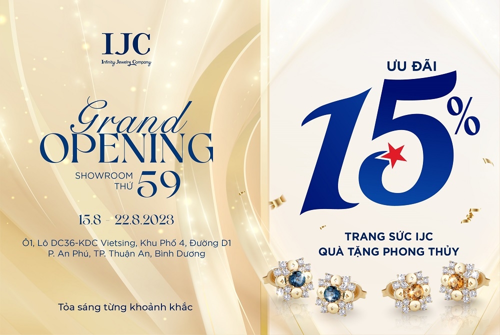 Trong tuần lễ khai trương từ ngày 15/8 đến 22/8/2023, IJC mang đến ưu đãi đặc biệt cho bạn: giảm ngay 15% cho trang sức thiết kế dòng Charm Jewelry và Infinity. Hơn thế nữa, còn có cơ hội nhận những món quà phong thủy độc đáo đang chờ đợi.