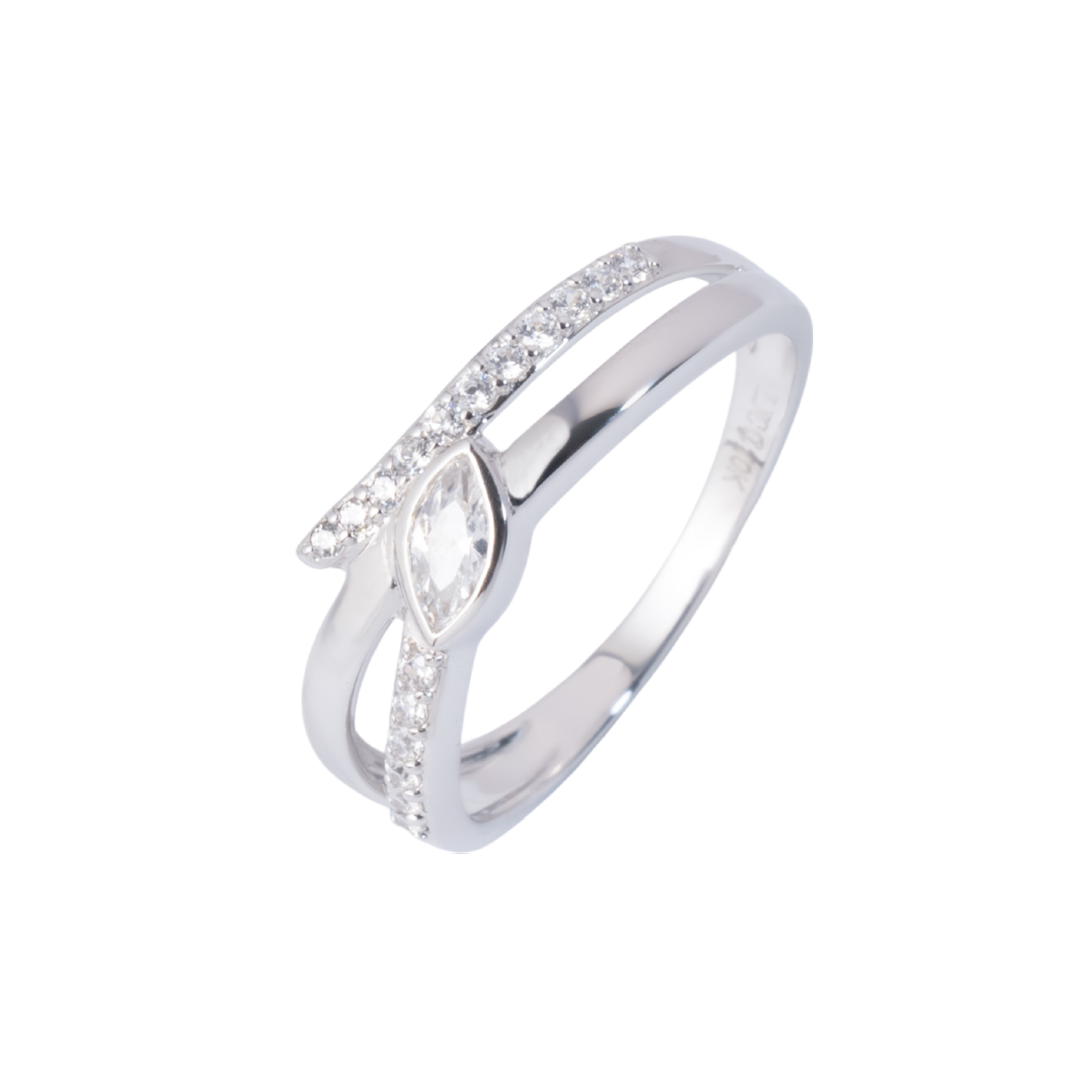 Mang phong cách hiện đại với thiết kế phá cách, nổi bật nhờ sự kết hợp hài hòa giữa hai dải uốn lượn và viên đá CZ cắt marquise đầy cuốn hút. Sự đan xen khéo léo giữa các đường nét giúp tạo nên cảm giác chuyển động mềm mại và đầy sống động trên tay.