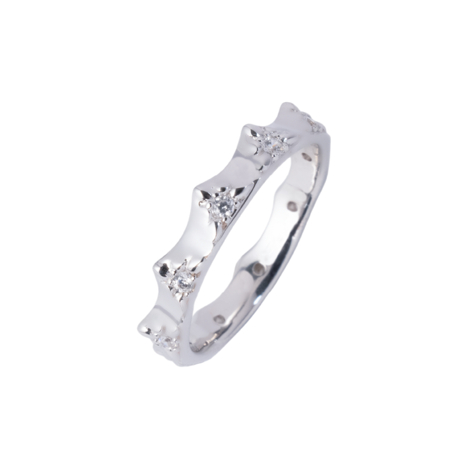 chiếc nhẫn nổi bật với kiểu dáng lạ, trên từng đỉnh chóp được đính đá CZ tạo hiệu ứng lấp lánh nổi bật, được chế tác từ vàng 10K. Phù hợp nhiều dịp – Tặng quà hay đeo hàng ngày đều ý nghĩa.