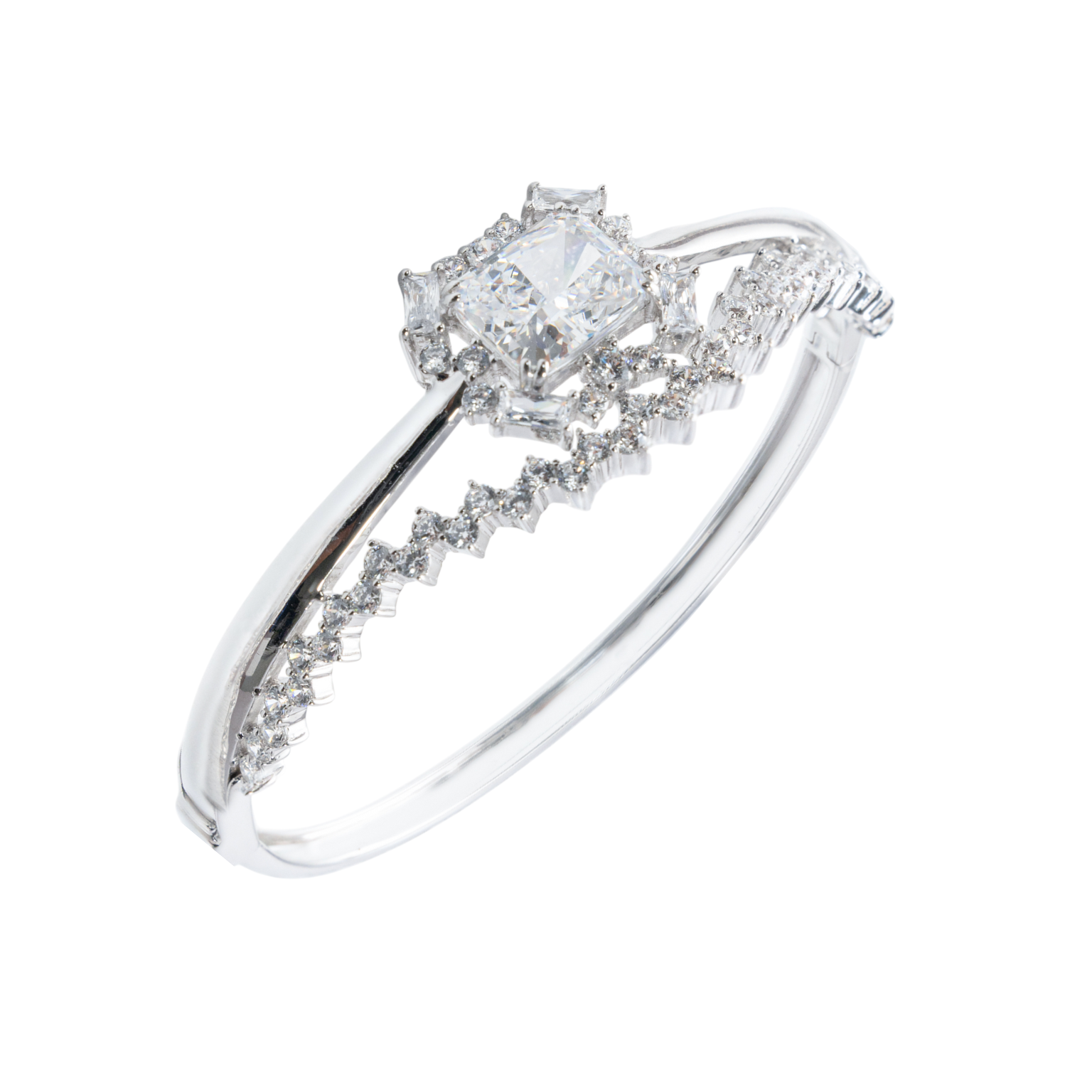 Mẫu vòng tay là sự kết hợp hoàn hảo giữa vàng 10K sang trọng và các viên đá CZ cao cấp sáng lấp lánh. Thiết kế trung tâm với viên đá chủ hình vuông được bao bọc bởi các lớp đá tấm tạo thành hiệu ứng vương miện tinh xảo, kết nối liền mạch với dải đá chạy dọc theo phần thân lắc, tạo nên tổng thể quý phái nhưng vẫn mềm mại, nữ tính.